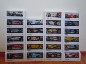 Modely formulí mám v krabičkách, které chrání model před prachem a dají se pěkně štosovat. Přes fólii se ale modely špatně fotí..