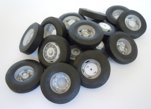 Špatné počasí bývá pro modeláře dobrá zpráva. Stačí jedem deštivý víkend a za dva dny toho udělám tolik, co bych při současném tempu mastil týden. Zpracoval jsem si základ na kola jak přívěsu, tak i Liazu. Teď jen čekám na laserované dezény a může se kompletovat. Co se mi teda moc nelíbí, tak že pásek disku je delší, než je vnitřní obvod bočnice. Kdesi jsem od nějakého betatestera četl, že je to tak schválně, ale pěkně díly slícovat dá docela zabrat.