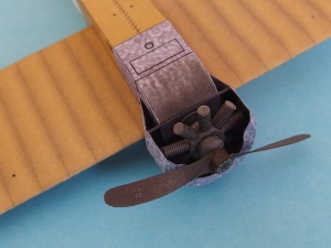 Pomalu pokračuji dalšími celky - ostruhou, motorem a kulometem. Jeden válec je ve vystřihovánce navíc (asi záloha) a díl kulometu 58 by se správně neměl podlepovat, jinak je vše bez problémů.
