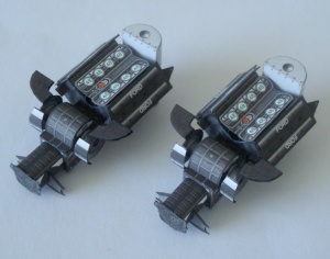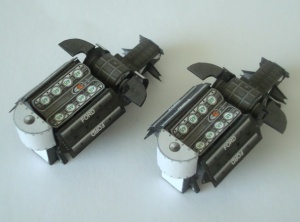 Pustil jsem se do pohonných jednotek. Zadní díl jsou bohužel nalepil obráceně, na což jsem přišel až při zkusmém přiložení držáků zadního křídla.