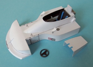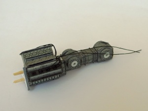 Pustil jsem se do tohoto kousku, ze tří důvodů. Abych si vyzkoušel práci s laserovým tiskem, nemusel k tomu tolik retušovat a navíc se tematicky celkem k tyreláčkům hodí. Začal jsem koly a strávil jsem nad nimi několik týdnů. Asi jsem se dosud nepřizpůsobil technologii tisku, ale při sebemenším násilí barva praská a odlupuje se. Vždycky jsem tedy slepil část kola a znechucen odložil "dílo" na pár dní do krabičky. K vyhození nakonec nedošlo, takže aktuálně mám hotových všech šest kol, která po přetření nevypadají zas tak hrozně. Ještě samozřejmě dojde k jedné vrstvě a doladění detailů, na což ale tak nějak zatím nemám náladu. Doufám, že se zbytkem to už půjde lépe, protože tam už by "záchranářské" kompletpřetření nepřicházelo v úvahu.