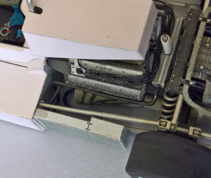 Přední část kokpitu se mi úplně nepovedla. Vnější díl jsem neměl úplně srovnaný a pak už to nešlo napravit. Jinak na horní hraně sedačky je vidět, že barva jde dolů i s maskovací páskou.