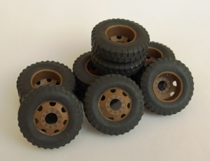 Pneumatiky mám hotové, drobné nedostatky v retuši se doladí až po osazení na model. Jestli bude někdy chuť, přidám časem ještě šrouby.