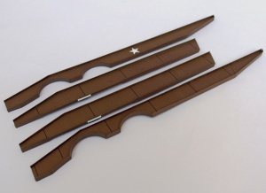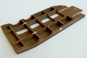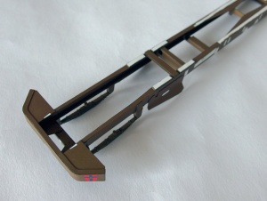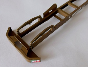 Držák rezerv (díly 33 + 33A) je třeba zúžit, aby bylo možné ho napasovat do rámu. Zadní čelo (díl 38) je naproti tomu o téměř 3 mm kratší (užší), navíc jsou na něm nesmyslně vyznačena místa pro nalepení dílů 41L a 41P.