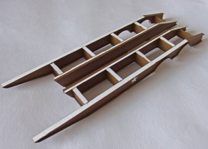Základ rámu sedí dobře. Jen si dejte pozor na občas prohozené značení L/P. Mrknul jsem i na další dílky a sem tam se chybička také najde. Trošku jsem se našpekuloval při osazování příček č. 4 a 5, ale správně by to zřejmě mělo být takto, tedy díry napravo ve směru jízdy.