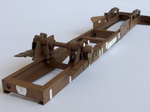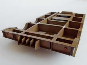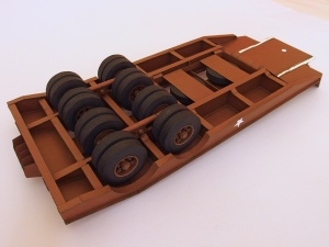 Podval už mám na všech kolech. Přitom se definitivně potvrdilo, že na místa pro přilepení čehosi po stranách přední části dílu 11 (spodek "podlahy") opravdu nic nepatří. Podobně jako na tahači jsem opět doplnil pár "ivantovek".