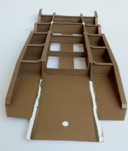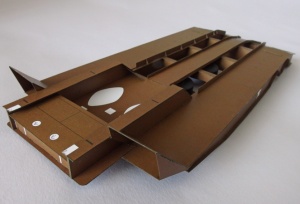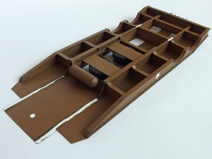 Další kapitolou jsou návodné kresby, které by teda určitě mohly být lepší. Hlavně že třeba kola jsou rozkreslena asi na 5 obrázcích, ale jiné části musí člověk lepit tak nějak podle intuice. Kam třeba patří díly 26L a 26P jsem dosud nevykoumal. S přesností dílů to také není žádná hitparáda a už nejde jen o +/- 1 mm. Díly 20, 21 a 22 jsou totiž delší nejméně o 5 mm (stejně tak i vyznačené místo pro lepení právě dílu 21 na podlahu). V délce dílů 13A chybí alespoň 1 cm, navíc se na něm vyznačená místa pro lepení výztuh 13C (ty malé trojúhelníčky)vůbec nekryjí s těmi na dílu 6 (rám). Další zradou je, že zadní část podlahy (díl 14) jsem nalepil podle návodné kresby na str. 1, což se nyní ukázalo být obráceně.