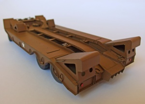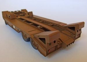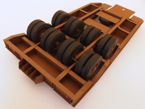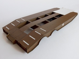 Zato přívěs mne štve čím dál víc. Neustále se ukazuje, že barva si ne moc dobře rozumí s použitým papírem a ráda se odloupne. Problém se sice týká i tahače, ale u podvalu je víc lepení natupo a při potřebě byť nepatrné korekce vznikne nepěkná trhlina.