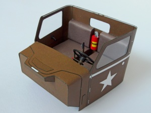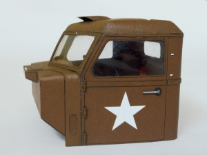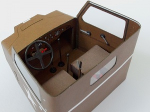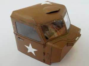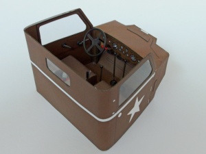 Kabina zatím byla bezkonkurenčně nejhorším celkem modelu. Před uzavřením tomu přitom nic moc nenasvědčovalo, pouze nesmíte zapomenout vlepit hasičák, jehož díly číselně nenavazují. Jistým varováním mohlo být, že vnitřek kabiny je třeba vůči vnějšímu plášti o několik mm zkrátit (provedeno po stranách zadní stěny. Pořádné problémy nastaly při snaze kabinu uzavřít. Díly boků, předního skla, střechy a jejích výztuh si totiž rozměrově neodpovídají. Přední sklo má navíc úplně špatný tvar, a nepasuje tak k okolním 4 dílům. Skoro to vypadá, že autor měl připravena dvě různá řešení a ve výsledku je splácal dohromady. Když k tomu připočítáte loupající se barvu, pochopíte, proč jsem si musel dát několik týdenních pauz, abych model nerozdupal. S výsledkem spokojený úplně nejsem, při osazování na podvozek se pokusím ještě pár detailů doladit.