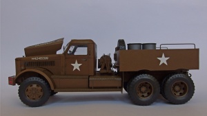 Během fotbalových večerů jsem tenhle projekt dorazil. Korba tahače byla taková prázdná, tak jsem vybrakoval Shermana od GPM a podval za Famo od Angrafu; větší potřebu ani ambice nemám.