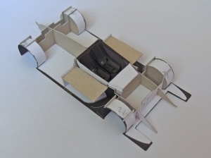 Autor modelu předpokládal lepení podle čísel, začal jsem tedy kostrou. Mimo tuto logiku jsem již v tuto chvíli nalepil i spodní díl podlahy. Zatím vše sedí naprosto přesně.