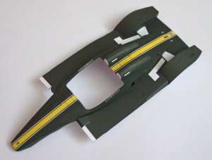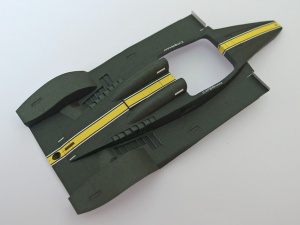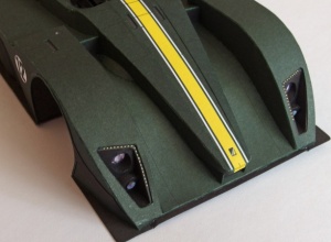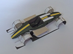 Dolepil jsem záď; jedinou úpravou bylo dodělání chlopní. Zbývá jen osadit kola a pár doplňků. A jak vidím na fotkách, tak ještě přelepit zrcátka, která se mi vyklonila nějak nahoru.