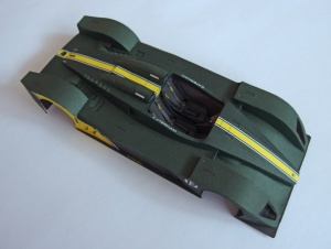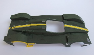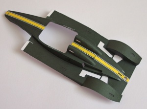 Tak už to začíná dostávat nějaký tvar. Teď se hlavně musím správně rozhodnout, kdy a jak začnu karosérii pasovat na kostru s kokpitem. Ještě jsem nezmínil, že model neobsahuje žádné lomové čáry ani rysky vně dílů. Pro výsledný efekt je to určitě přínosem, při stavbě je to ale občas dost loterie, zda a kde díl narýhovat.