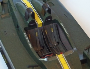 Pokračuji kokpitem. Při jeho zabudovávání do kostry, jsem ji musel trošku upravovat. Zřejmě se ne úplně počítalo se sílou papíru, takže se tam nemohl vlézt; ale nic neřešitelného.