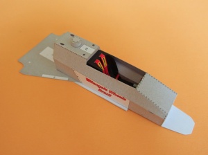 Při lepení předních křídel jsem si troško zanadával. Jsou totiž kratší než místa pro jejich nalepení vyznačená na přídi a na bočnicích (ta navíc mají nestejný tvar). Hlavně ale vnitřní část křídla není navržena tak, aby pasovala na tvar přídě a navíc bylo křídlo vodorovné. Sedlo mi to až po několikerých úpravách. Celek zadního křídla byl naproti tomu brnkačka.