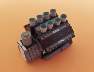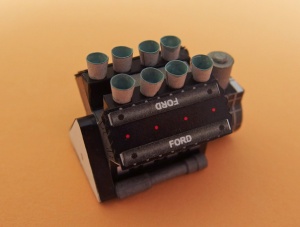 Kolem motoru jsem našel pár drobných nepřesností. Díly bloku 30 a 31 si ne úplně odpovídají, nejde však o nic neřešitelného. Lišty s nápisy Ford (díly 40) nejsou uvedeny v návodu a jeden pár je kratší, než místo pro nalepení vyznačené na dílech 30.