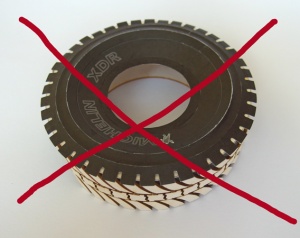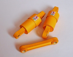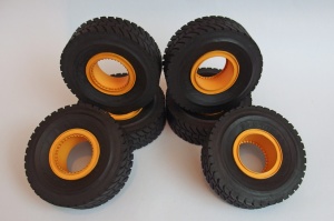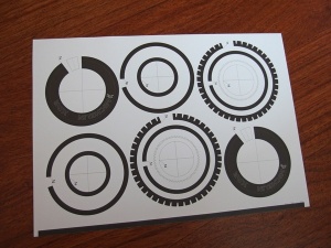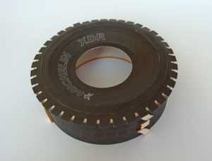 Pár postřehů pro budoucí následovníky: Dovnitř kol bych doprostřed vložil ještě jednu výztuhu B. Naproti tomu výztuhy A jsou podle mne nadbytečné, když se díl 1u má podlepovat. Pásky 1q, 1r a 1s vyřežte o něco delší a podle potřeby zkraťte. Do vnějšího prstence disku (pásky 1r a 1s) jsem vložil ještě jednu vrstvu. Průměr otvoru v pneumatice je potřeba poměrně výrazně rozšířit, aby vůbec bylo možné disk nasadit.