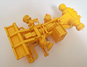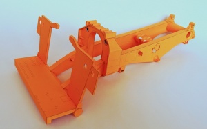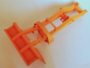 Všechno se do rámu vejde hodně natěsno. Již dříve jsem zmiňoval trubky 14 na motoru. Před připojením generátoru nezapomeňte na rám nalepit desky držáku nádrže 34p + 34q se šrouby 34r (ten jeden chybí), později už nebude šance je tam dostat. Držák 27r - 27y jsem nejprve připojil do závěsu a k nápravě 27 jsem ho lepil až nakonec.