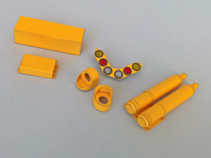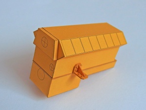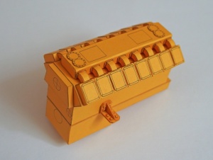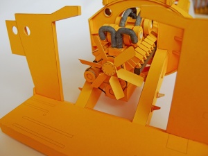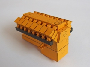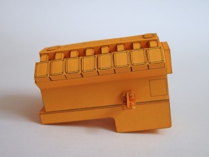 Každopádně se stále potvrzuje, že k modelu je třeba přistupovat obezřetně. Návodných kreseb je málo, některé jsou nedodělané, byť v detailech. Jednotlivé díly a - x doporučuji lepit podle zkušenosti, podle abecedy to většinou nebude. Model je původně navržen pro tisk na barevné papíry, některým dílům tak chybí rub. V zásadě není počítáno se sílou papíru, kupř. u válců je obvod podstav větší než délka pláště. Kruhové otvory jsem naopak často musel zvětšovat.