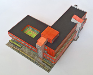 Zaznamenal jsem už pár nepřesností ve značení - týká se to hlavně nesprávného označení čísel vedlejších dílů pro přilepení. Díl č. 49 je pak chybně označen jako 19. Oproti vystřihovánce jsem do komína přidal průduchy z černého papíru.