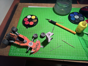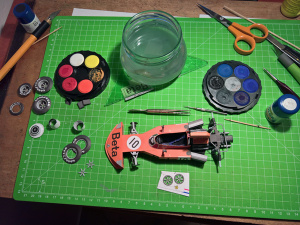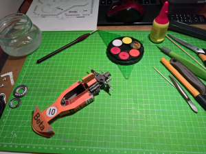 Po dvou hodinách mám vše potřebné podlepené a rozpracované 4 díly. Zatím to vypadá na pomalejší rozjezd.
