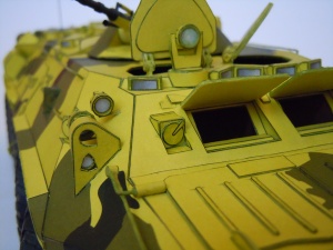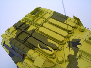 Barvy jsou klasické „modelikovské“ bez jakékoli patiny. Bohužel na některých dílech na sebe jednotlivá barevná pole nenavazují. Interiér není zpracován vůbec. Průlezy nad pracovištěm řidiče a velitele je sice možné otevřít, nikam ale nevedou.