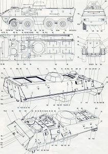 Při stavbě mne celkem mile překvapilo, že v podstatě všechno sedělo ? úpravy byly minimální. Jednou z mála chyb má zadní čelo (díl 6), které je nutné zhruba o 2 mm snížit, aby navazovalo na boky a střechu korby. Návod je tradičně stručný, ale s přispěním kreseb lze většinu nejasností vyřešit. Po stavbě mi však i přesto zbylo několik dílů (měly se umístit někam do pracoviště řidiče a velitele, ale ani z návodu ani z kreseb to nebylo zřejmé). Největší problémy jsem tam měl s věží. Rozhodl jsem se totiž pro variantu 2AP. Boky vůbec nepasovaly na střechu a rozměrově neseděly na nástavbu na korbě. Nakonec jsem zadní část rozstřihnul a zkrátil o min. 3 mm a celou věž tak o 1 mm snížil. Dalším oříškem bylo umístění zbraně. Z návodu se nedalo nic vyčíst (boční řez byl pouze pro jednodušší variantu pro verzi 2P) a i na internetu jsem našel pouze fotky ze stavby 2P. Po několikerém zkoušení, lepení, řezání a zase lepení jsem to ale nějak dopatlal. (Zkusmo jsem slepil i věž 2P, tam žádné větší problémy nebyly.)